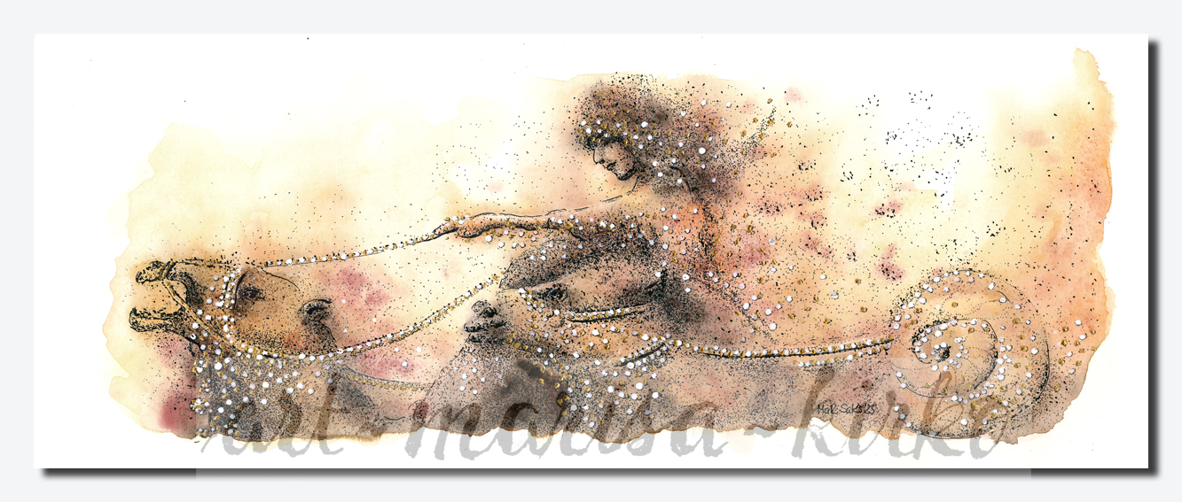 "Bewegung" war das Stichwort. Die Farben mit Bedacht gewählt: Wüste, Trockenheit, Hitze... Und mit Tusche gezeichnet, Punkt für
